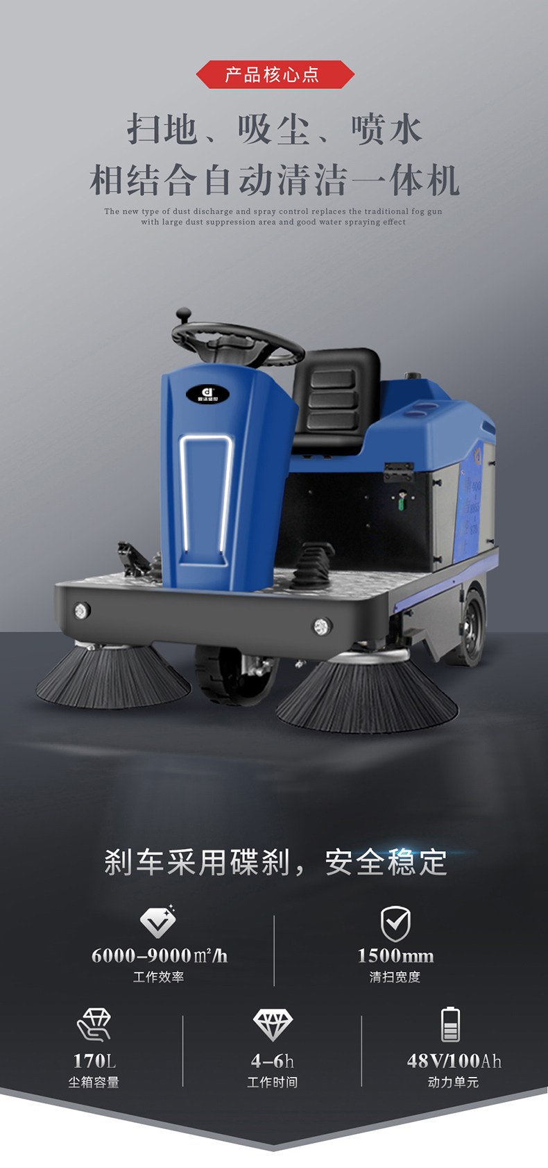 清掃公園、街道、車站、碼頭、市政道路、物業(yè)小區(qū)、 倉(cāng)庫(kù)、廠區(qū)車間、學(xué)校、體育場(chǎng)、大型會(huì)場(chǎng)、機(jī)場(chǎng)等區(qū)域